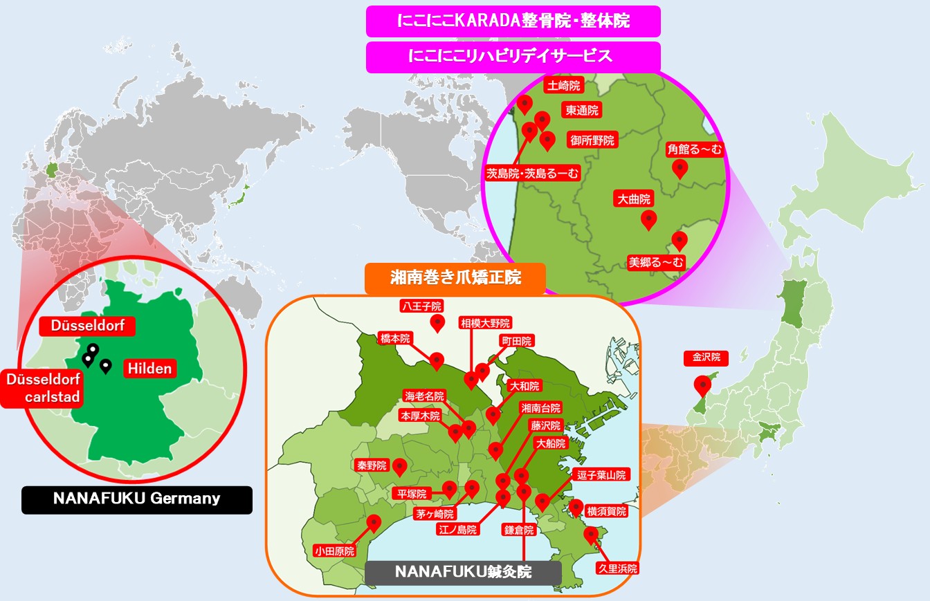 729Co.,Ltd.は秋田県・神奈川県・ドイツにて「整骨院」「鍼灸院」「巻き爪矯正院」「デイサービス」「トレーナー派遣」など、様々な事業を展開しております。